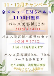 11月、12月は、美容メニューのキャンペーンを開催しています!